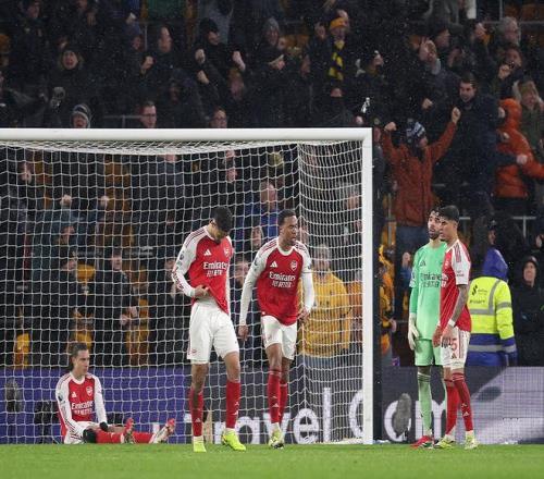 英超第31轮比赛,榜首阿森纳客场2-2战平排名垫底的狼队,枪手未能守住两球领先的优势,在伤停补时阶段被狼队绝平。