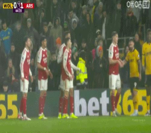 第5分钟,萨卡禁区插上头球破门,阿森纳1-0领先狼队