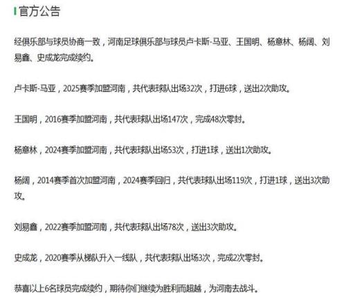 后防核心卢卡斯·马亚留队,意味着后防线防空和出球有了主心骨,上赛季马亚出战32场全部首发,贡献6球2助攻,带刀侍卫一个。王国明的续约则给门线安全上了“双保险”,出场超140次的老将是更衣室精神领袖。杨意林、杨阔等实力派轮换,河南队保住了上赛季的战术框架和默契度。